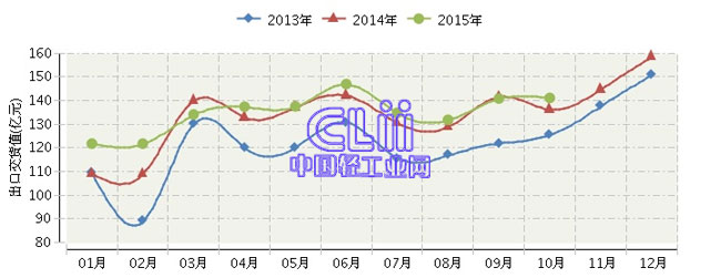 - 2015年1~10月全国家具行业出口交货2016/3/25 10:30:08