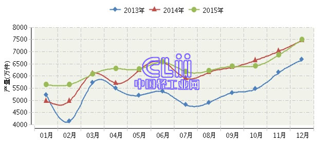 - 2015年1~12月全国家具行业产量累计2016/6/23 10:05:05