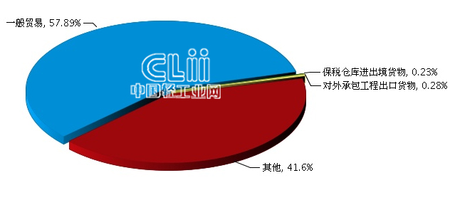 2016年1月~3月全国照明行业对巴布亚新几内亚累计出口额贸易方式占比情况