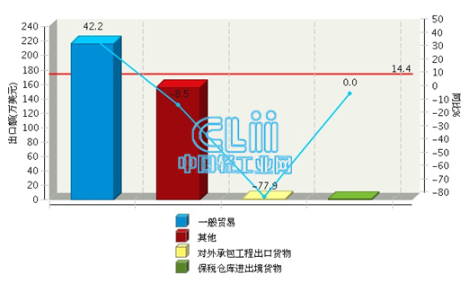 2016年1月~3月全国照明行业对巴布亚新几内亚累计出口额贸易方式同比情况