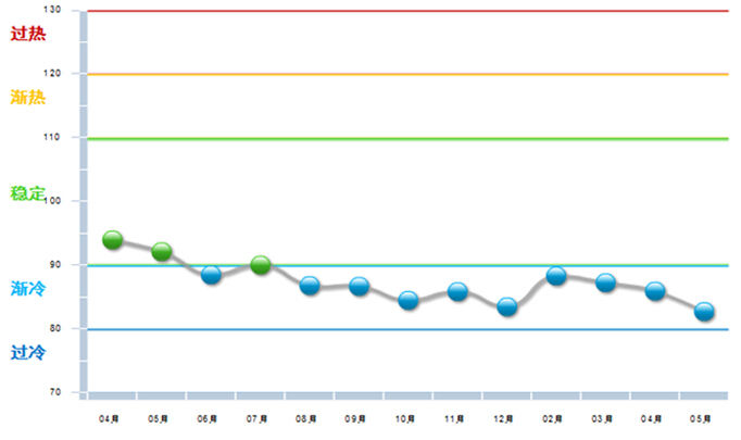 自2015年下半年以来,自行车行业利润景气指数一直处于渐冷区间。进入2016年后,利润指数虽然略有上升,但依然位于渐冷区间,且有走低的趋势。(见图1)。