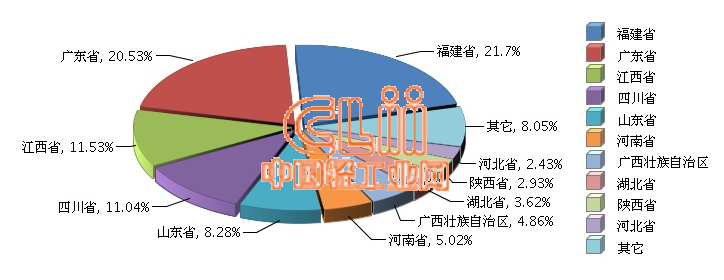 从同比增速看,产量前十的地区中,四川、广西、江西、河南、河北以10%以上增速,依次排在前五位;广东、湖北、陕西出现5.29%、3.81%、1.45%不等的负增长,增速居尾,其中广东由上年同期产量首位降至第二。