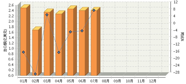 - 2016年1~7月全国食品行业出口额月度2016/9/8 9:39:50