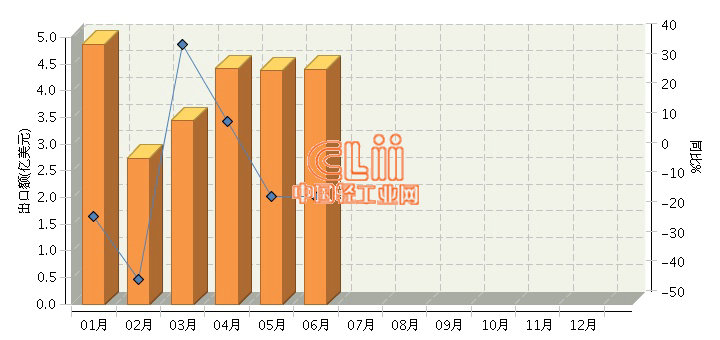 据海关数据显示,2016年1~6月,全国陶瓷制餐具行业累计出口同比下降14.92%。其中:6月份出口4.4亿美元,同比下降13.58%。