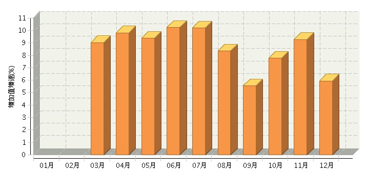 2016年1-12月份,我国五金制品行业工业增加值累计增速8.19%,高于轻工全行业1.66个百分点。增速较去年同期提高1.56个百分点。12月份行业增加值增速为5.94%,比11月份回落3.33个百分点。低于同期轻工全工业0.64个百分点。