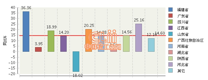 从产量增速看,福建、河北、广西、四川增速居前,均高于全国平均增速;产量前十地区中,只有山东增速回落,同比下降18.02%。