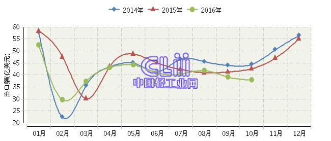 - 2016年1~10月我国家具行业出口累计2017/6/23 15:23:14