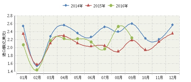 根据海关总署发布数据:2016年1~9月,全国家具行业累计完成进口额19.01亿美元,同比增长2.03%。其中:9月份家具进口额同比增长2.45%。