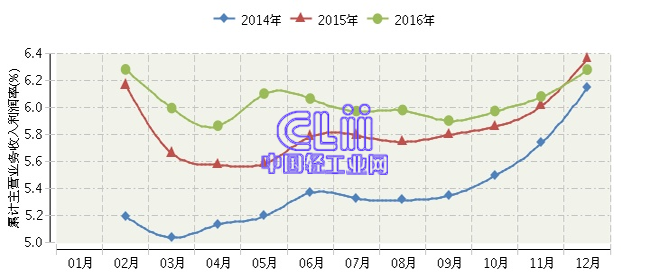 2016年1~12月全国家具行业累计主营业务收入利润率为6.28%