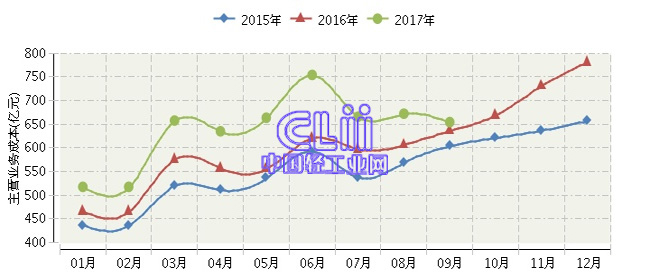2017年1~9月全国家具行业主营业务成本累计同比增长10.74%