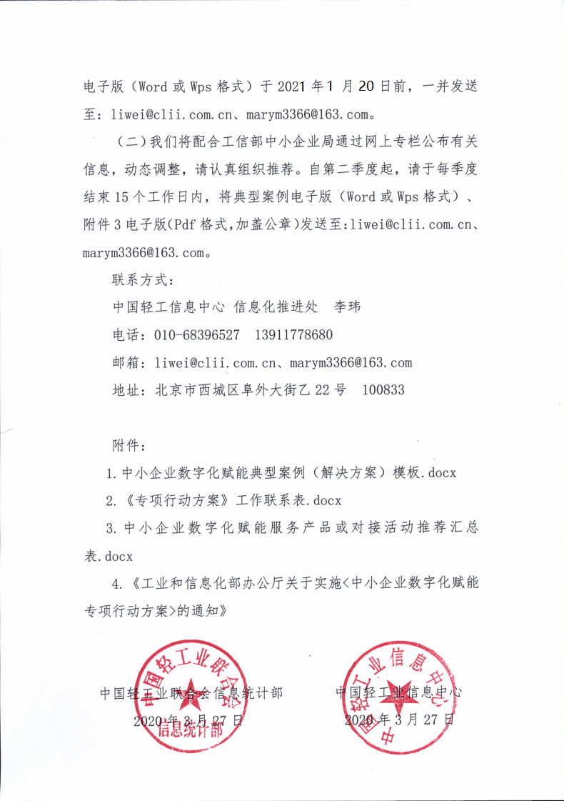 为落实《工业和信息化部办公厅关于实施<中小企业数字化赋能专项行动方案>的通知》(工信厅企业〔2020〕10号,以下简称《专项行动方案》),