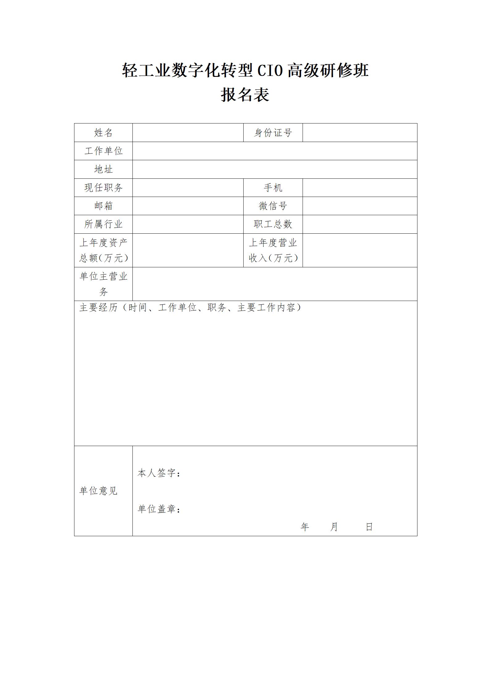 | 2、 | 附件:轻工业数字化转型CIO高级研修班报名表 |