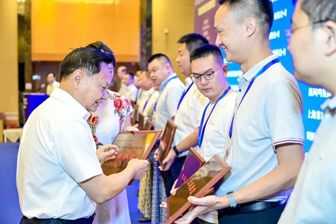 会长张崇和为获奖单位颁发2022年中国轻工业数字化转型先进单位奖