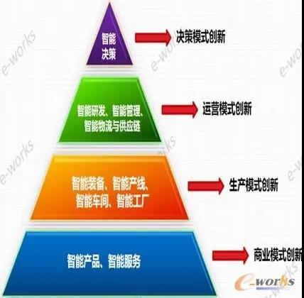 e-works 黄培博士曾经总结了智能制造的十大应用场景,被广泛引用。简单地说,我们推进智能制造的目标之一是为了向客户提供智能的产品或智能的服务,但是,有些普通的商品比如饮料、食品、服装,它不是智能产品。但即使是普通商品,在研发或生产过程中,可能都需要涉及到智能装备、智能产线、智能车间、智能工厂、智能研发、智能管理、智能物流与供应链以及智能决策。如果要再加一个,可以包括智能的工艺。这十大应用场景涉及到四大模式的创新,即商业模式、生产模式、运营模式、决策模式。如下图。