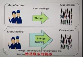 传统上制造企业给客户提供其所需要的物品(产品),仅此而已。现在的理念则不同,除了提供物品还要提供相应的服务,即提供:产品+服务,如图1所示。当然传统方式提供的产品也能够为客户服务,即产品特定的目标功能服务,如洗衣机执行“洗衣”的服务。但现在很多企业已经意识到,仅仅是特定目标功能服务是不够的,还需要提供产品使用环节的服务。如,为了让用户充分利用产品功能且使用方便,嵌入某种附加功能,使用户非常方便调用或者寻求特别指导;还有产品的状态监测、故障诊断以及保养维修服务等。这些都需要产品的附加功能去支撑。也就是说,开发人员考虑产品进化时,不能够忽略产品使用过程中的服务环节。要做到这一点,一般需要数字化、网络化和智能化等技术的应用。服务是产品的附属部分,是产品的延伸。之所以如此,除了基于客户的考虑之外,也是差异化竞争的需要。差异化是战胜竞争对手的最好利器,也带来顾客忠诚度。顾客心里认同感的来源总的来说还是源自于商家的服务,服务越细,忠诚度就越高。