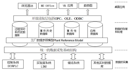 Uniformance平台结构如图2所示,由数据采集、数据存储处理和桌面应用3个层次所构成,主要包含以下功能。