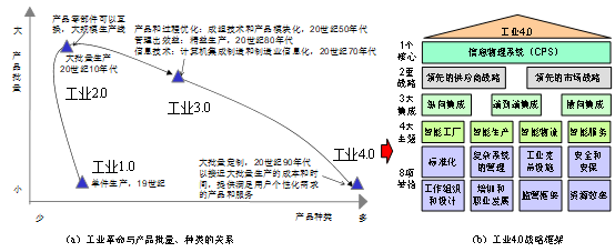 图1 工业革命与产品批量、种类的关系以及工业4.0战略框架