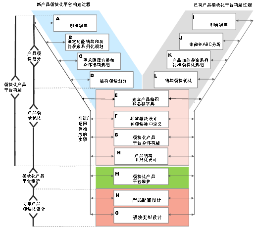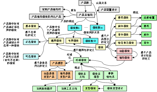 产品模块化设计平台和架构的建立需要分析目前需要分析已生产过的产品的各种变化,而且需要对未来产品的各种变化进行预测和分析,提炼出共性的模块。