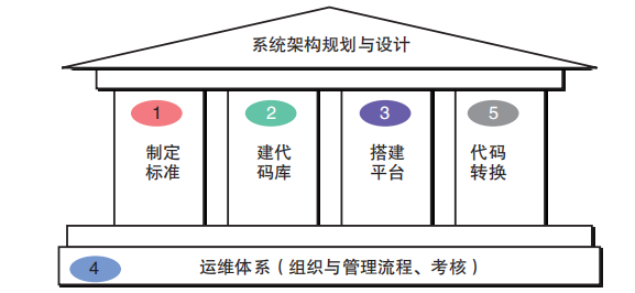 企业开展主数据治理活动,首先需要建立统一的主数据治理体系,主要从数据标准、主数据代码库、主数据管理平台、主数据运维体系、目标系统代码转换这5个方面来建立治理体系框架。其中,首要的就是统一主数据标准,然后基于该标准建立主数据代码库,设计主数据运维体系保障主数据常态化运转,最终所有的主数据治理成果都必须通过主数据管理平台进行落地(见图1)。