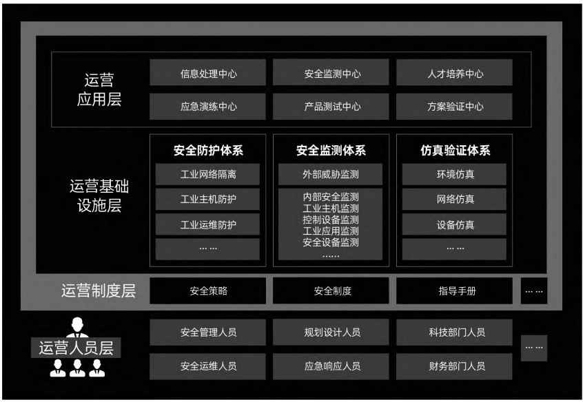 运营基础设施是企业开展安全运营工作的支撑,无论是从安全合规性角度还是从风险管控角度,安全运营工作都需要专用的技术措施作为支撑。安全运营中心建设可构建包括安全监测、防护、仿真验证的安全基础设施,实现对安全事件的发现、通报、验证、处置、恢复。运营应用是结合石化、有色冶金行业自身情况,逐渐形成围绕石油石化、有色冶金行业安全发展需要的典型应用,包括工业信息安全人才培养中心、应急演练中心、产品测试中心、方案验证中心等方面。