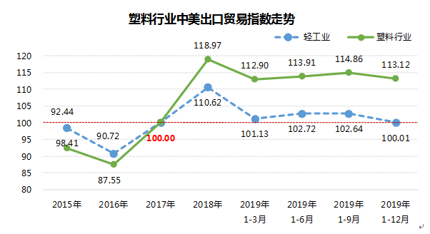 2019年1-12月塑料制品行业中美出口贸易指数113.12