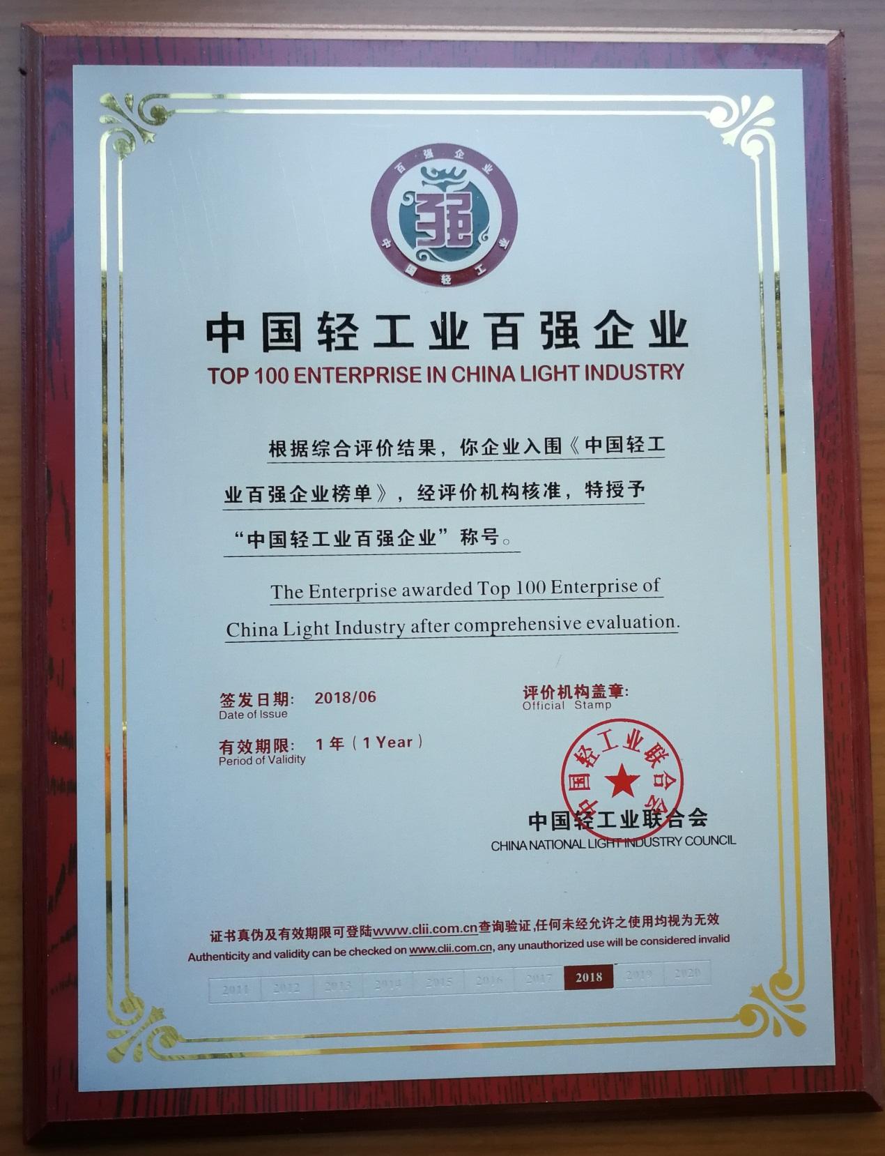 为全面贯彻党的“十九大”精神,推动轻工业高质量发展,满足人民日益增长的美好生活需要, 于2018年6月20日在北京举办了以“让人民生活更美好”为主题的中国轻工业百强企业高峰论坛。蒙牛因突出业绩与创新能力,获得中国轻工业百强企业排名第16、专项能力百强榜单(市场能力、盈利能力、电商能力)、食品企业五十强总排名第4等评定,综合实力获得社会公认。