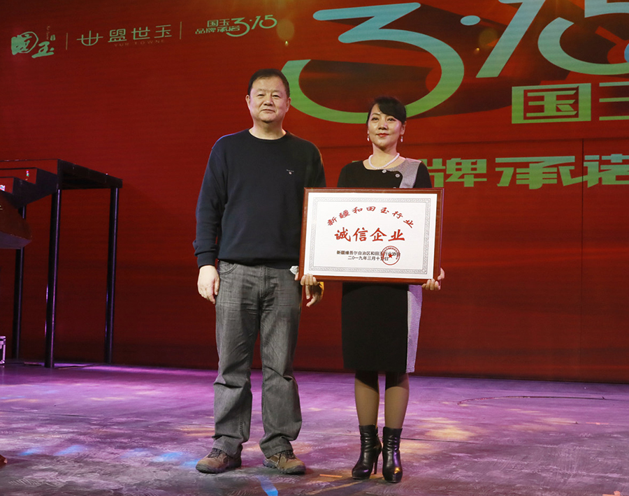 3月15日,在乌鲁木齐国际大巴扎宴艺大剧院内,新疆国玉和田玉股份有限公司发布了新疆和田玉行业品牌承诺,即《国玉盟世玉315品牌承诺体系》。