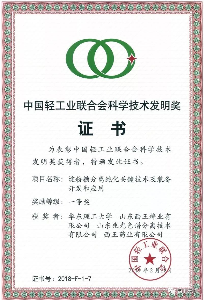 近日, 四届五次、中华全国手工业合作总社七届九次理事会议召开,对2018年度科技发明及技术创新方面表现突出的项目进行了表彰。由西王糖业与华东理工等单位共同完成的《淀粉糖分离纯化关键技术及装备开发和应用》项目通过层层筛选和专家评审,荣获2018年度 科学技术发明奖一等奖。