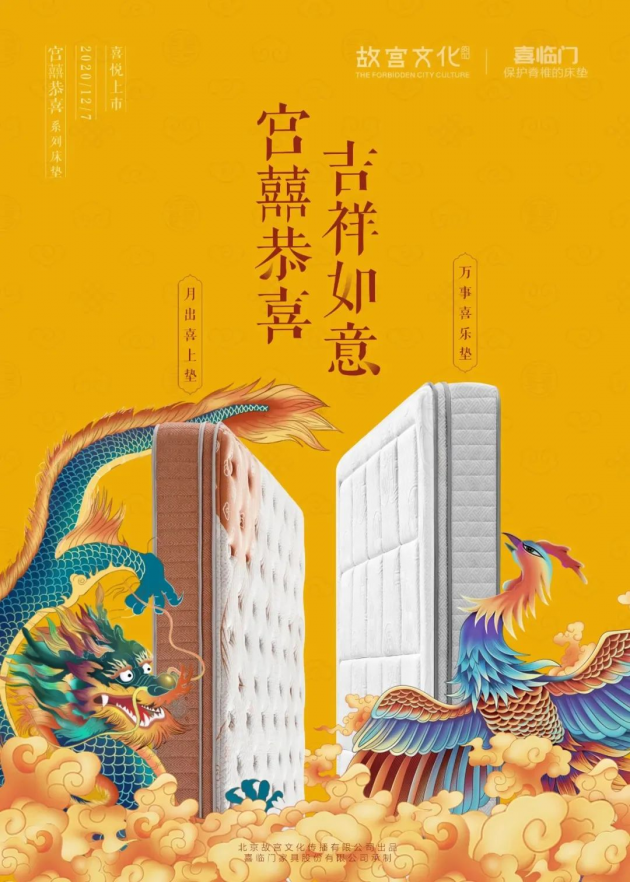 近日最新一个重磅动作是,喜临门与故宫签约合作研发的“宫囍恭喜”系列新品床垫官宣上市。