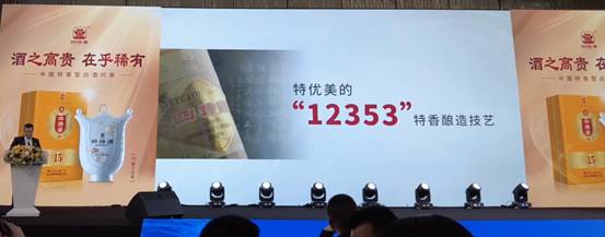 其中,“1”指一种酿造原料。是固态发酵工艺中唯一用大米做原料的白酒企业;“2”指两种窖池材料,四特酒的窖池主要由红褚条石和优质窖泥组成。其富含复杂微量元素,是孕育四特特香风味的至宝;“3”指三类物质大曲。曲为酒之骨,四特酒大曲的配方是面粉、麦麸、酒糟。酒糟的加入进一步强化大曲的品质;“5”指五轮次发酵。因为环境温度不同,湿度也不同,每一轮酒的控制、参数以及出来的酒质也不同。四特酒的五轮发酵经过科学的验证认为是最适合特香型白酒制作的发酵程序,提升了酒的品质;“3”指三层次摘酒。四特酒糟分好多层,比如面层、中间层、底层,尤其是用老五磳,由于常年循环,各层出的酒是有分别的,并且每一层的酒都有特色,可以为不同年龄段的消费者提供他们喜欢的酒。