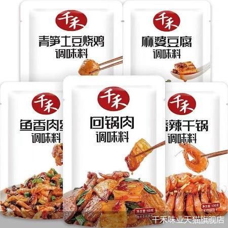 在千禾味业天猫旗舰店可以看到,千禾味业上新了一款中式复合调味料,主打四川特色风味。此款产品共有鱼香肉丝、麻婆豆腐、青笋土豆烧鸡、回锅肉、香辣干锅5种口味。价格为42.8元/5包,单包价格为8.56元。值得一提的是,这是千禾味业首次进军复合调味品行业。