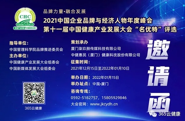 2021又是一个不平凡的一年,但总有一部份企业和企业家迎难而上,作岀卓越成绩,树榜样立标杆,提升品牌影响力,推动企业创新与转型升级促进发展,使企业更强更大,为此,由中国管理科学院品牌推进委员会指导,中国健康产业发展大会组委会、中国新媒体发展大会组委会联合主办,厦门柒玖捌传媒科技有限公司、中健惠民(厦门)健康科技股份有限公司策划承办,盛世无极(厦门)科技有限公司、中区财经、茶宝商城、茶酒产业联盟、六月天实业、读多多教育协办的2021中国企业品牌与经济人物年度峰会暨第十一届中国健康产业发展大会“名优特”评选全国展开征募!颁奖盛典与年度峰会将于2022年01月15日在厦门召开。