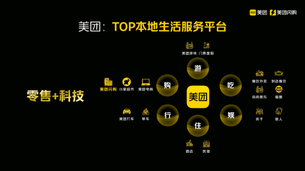 在正式开始之前,我想简要介绍一下美团和美团闪购。大家对美团都非常熟悉,这是一家零售科技公司,业务涵盖了饮食、住宿、出行、娱乐、购物等多个板块,规模非常庞大。相信使用美团的客户对我们的典型业务,如酒旅、外卖、大众点评等已经相当了解。