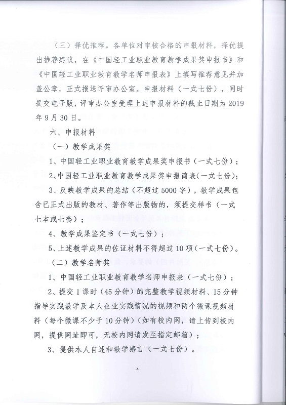 关于开展2018-2019年度中国轻工业职业教育教学成果、教学名师及全国轻工职业教育青年教学能手、优秀论文等评选工作的通知