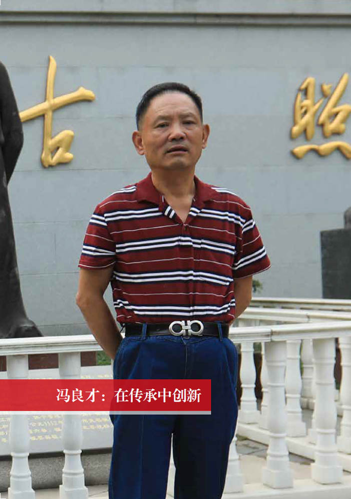 冯良才的血脉里流淌着徽墨传人的基因,更重要的是,他在传承中善于创新。在 20 多年的企业经营中,冯良才不仅熟练地掌握了传统的徽墨制作工艺,而且在实践中不断摸索出适应市场需求的新工艺。由他主导开发的高级油烟墨、特制书画用墨系列、仿古藏墨、高级天然朱砂墨,以其用料独到、配方科学、工艺精湛、墨面精美而享誉国内外,产品远销东南亚及港澳地区。2003 年,“绩溪徽歙曹素功墨庄”获得国家自营进出口权。冯良才的精湛工艺不仅赢得了国内的至高荣誉,成为书画名家的首选,也征服了骄傲的日本客户成为中国出口日本的最大宗墨品。2005 年,冯良才承制了澳门博物馆纪念明代书画泰斗董其昌诞辰 450 周年特制纪念墨《南宗北斗》,使失传已久的明代松烟墨制作工艺得到恢复和改进,受到国内外著名书画家、学者及收藏家的赞誉。耗时十年研制的 64 锭《御制铭园图》,更是让冯良才攀登上了徽墨技艺的又一座高峰。
