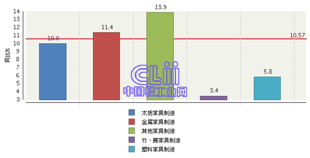 图5 2014年1~3月家具子行业规模以上企业累计主营业务收入增速情况