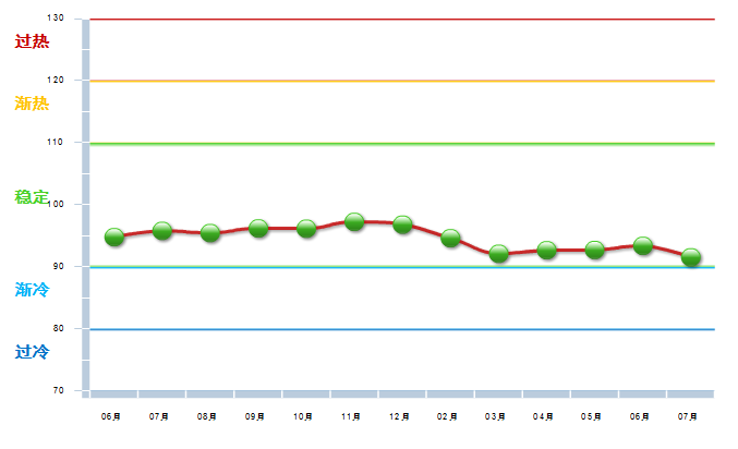 图2 2013.6----2014.7月工艺美术行业景气指数变化态势