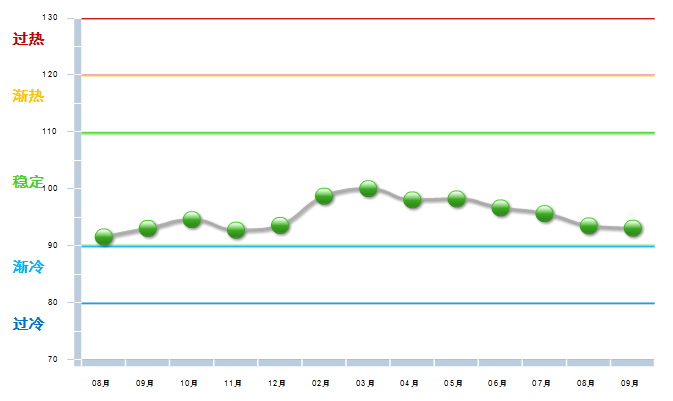 图4 2013.8----2014.9月工艺美术行业利润景气指数变化态势