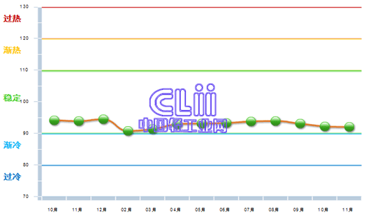 11月,家具行业主营业务收入景气指数进一步向“稳定”区间的下限附近运行,且是自9月起连续下滑的第3个月,11月比10月下降了0.16个百分点(图1)。