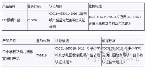 中国质量认证中心的LED照明认证等业务说明(图片截自中国质量认证中心)