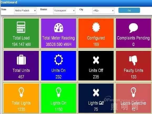 由印度节能服务公司(EESL)推出的CCMS系统,可以确保路灯正常工作和时时监控,并能实现GPRS双向通信,可编程自动和手动开/关,短信和电子邮件进行自动故障报告等。