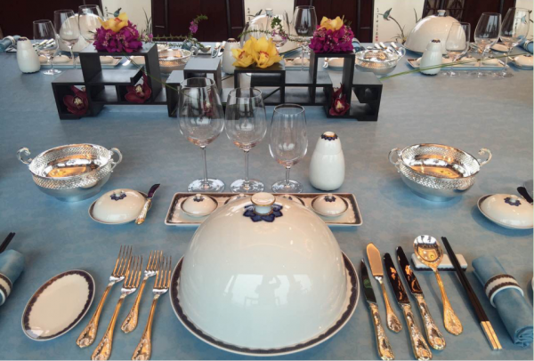 另外,徐尧林在创作国宴餐具的开始,就已提出了一个观点:一件精彩大作,必须是具备礼仪的。国宴餐具的礼仪尤为重要,首先要尊重菜品,尊重了才会产生美,然后你承载着菜品的餐具作品才有大美。