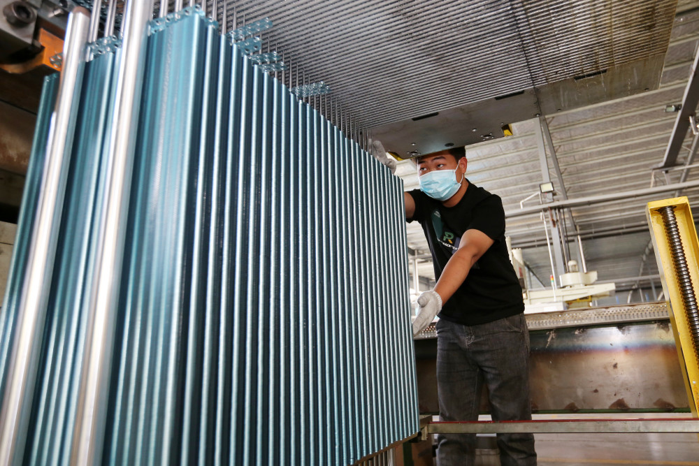 5月18日,工人在淮北市濉溪经济开发区一家空调企业车间内忙碌。 新华社发(万善朝 摄)