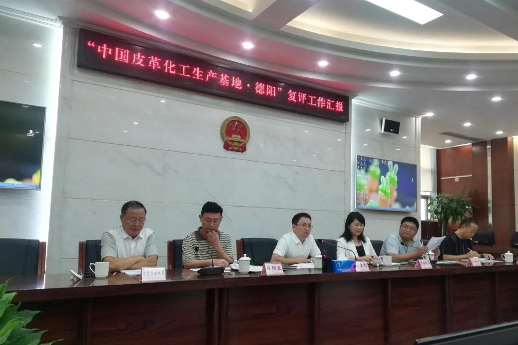 2021年9月16-18日, 和中国皮革协会共同组织专家对“中国皮革化工生产基地·德阳”进行了实地复评。复评专家组由 副秘书长杨曙光、中国皮革协会秘书长陈占光、四川省皮革行业协会会长李开华、四川大学轻工科学与工程学院副院长彭必雨、陕西科技大学轻工科学与工程学院院长吕斌和中国皮革协会产业部主任黄彦杰组成。德阳市政府副市长周杰、副秘书长刘文彬、经济和信息化局局长潘鹏、副局长林丹等地方政府有关领导参加了复评相关工作。