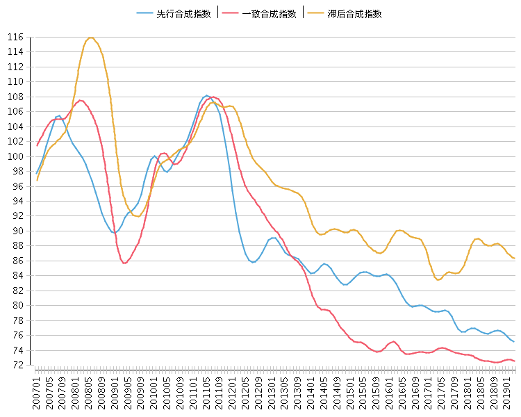 中国轻工业快速消费品行业景气指数显示,03月, 一致合成指数为72.65点(2010年=100), 比上月下降0.18点; 先行合成指数为75.14点(2010年=100), 比上月下降0.34点; 滞后合成指数为86.41点(2010年=100), 比上月下降0.24点。