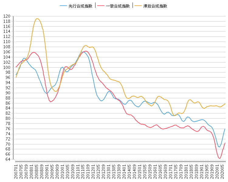 快速消费品行业景气指数显示:2020年7月, 该行业一致合成指数为70.48点(2010年=100), 比上月上升1.42点; 先行合成指数为75.85点(2010年=100), 比上月上升1.74点; 滞后合成指数为85.80点(2010年=100), 比上月上升0.33点。