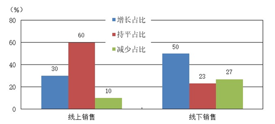 根据问卷调查显示,2020年四季度,42%的企业反映新冠肺炎疫情引发“宅经济”,对企业生产经营的影响利大于弊,31%的企业认为影响不大,只有27%的企业认为疫情的影响弊大于利。调查的样本企业中,77%的企业开通了线上销售渠道,比上季度上升了7个百分点,四季度进入冬季,新冠疫情出现多点散发趋势,企业又把重点转向了线上销售渠道。四季度线上销售量同比增加的企业占30%;同比持平的企业占60%;10%的企业线上销售同比下降。50%的企业线下销售同比增加,比重较上季度增加9个百分点;27%的企业线下销售同比减少,比上季度下降14个百分点。四季度,线上销售企业数增多,线上线下销售量增长的企业均多于销量减少的企业,一定程度上验证了四季度市场销量继续放大。