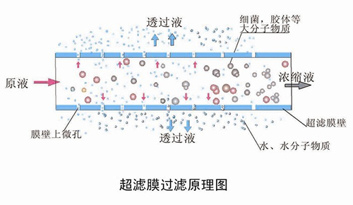 3、超滤膜的孔径为0.001微米,不需要电源供电,靠水压驱动过滤,能够滤除水中大部分的杂质及有害物质,但是不能过滤水垢、重金属及金属离子。