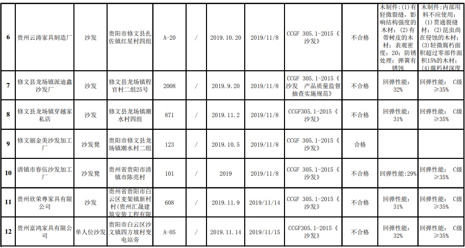 贵阳市抽查12个批次沙发产品 不合格8个批次