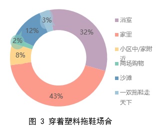 3. 消费者穿拖鞋场合多为浴室及家里,占比高达是76%。